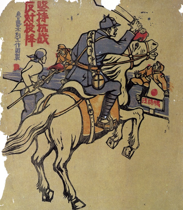胡一川创作的新年画《坚持抗战 反对投降》。