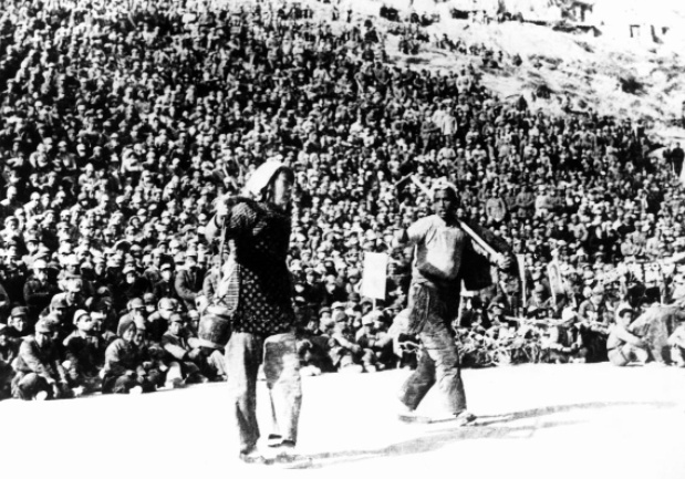 1943年春节,延安城中锣鼓喧天,一场精心筹备的军民联欢会在延安城南门外广场上拉开大幕。尽管黄土飞扬,天寒地冻,但正如台下安波的回忆所言:“一座巍巍的人山赫然地从平地竖起。”