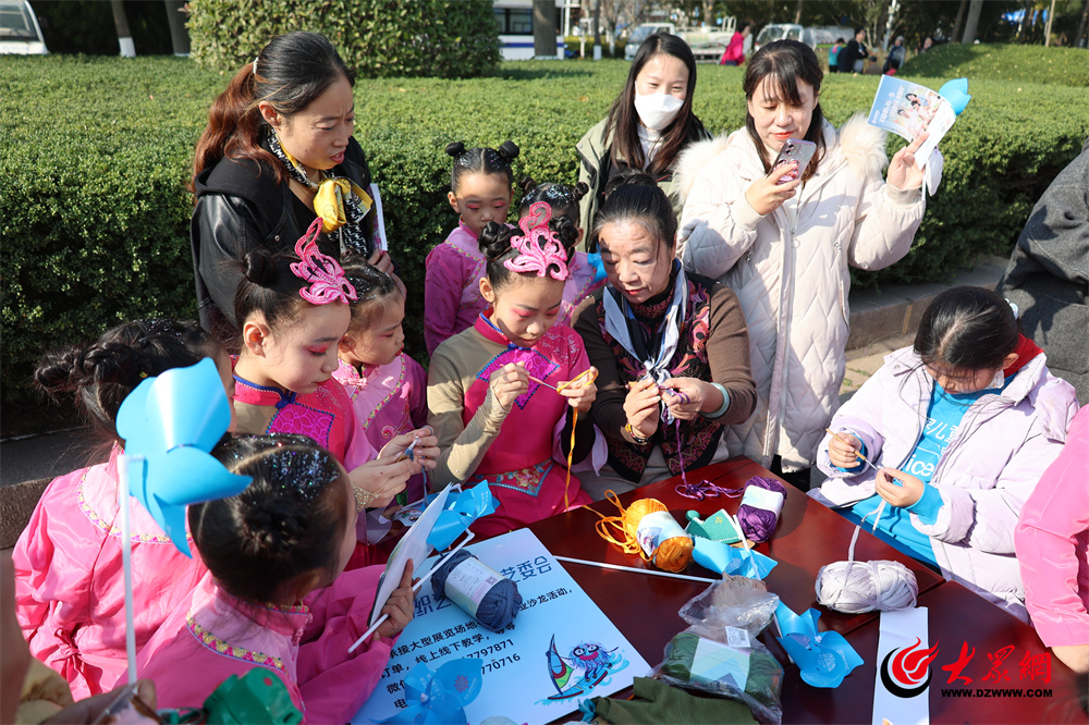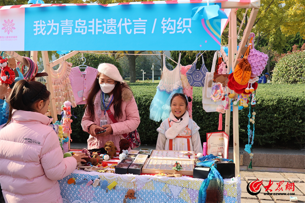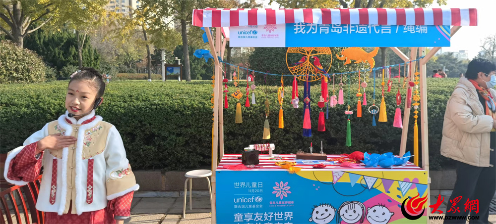 “大家好!欢迎来到世界儿童日非遗文化体验现场,我是非遗绳编项目代言人刘昕瑶,来自太平路小学。我先给大家介绍一下绳编项目……”伴随着清脆悦耳的童音,身着一身汉服的刘昕瑶正在做精彩讲解。岛城五四广场周边“点亮”一片蓝色。“庆祝世界儿童日”“儿童友好之城 幸福美好家园”“儿童友好 让青岛的明天更美好”等标语口号随处可见,营造出温馨浓厚的节日氛围。在欢快热闹的蓝色海洋中,一场以“感受非遗文化魅力 传承中华文化自信”的文化嘉年华正在火爆开启。