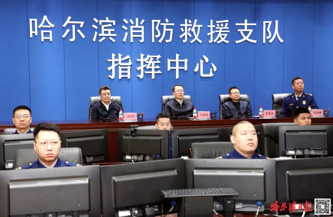 在哈尔滨市消防救援支队指挥中心,于洪涛听取节日期间执勤情况汇报,现场调度尚志市消防救援大队及冰雪大世界、中央大街执勤点。他说,消防救援队伍承担着防范化解重大消防安全风险、应对处置各类灾害事故的重要职责。过去一年,全市消防救援队伍恪尽职守、枕戈待旦,为保一方平安发挥了不可替代作用。希望大家在新一年里全力以赴守护群众安宁,特别要把好春节期间烟花爆竹及消防安全风险防控“安全关”。