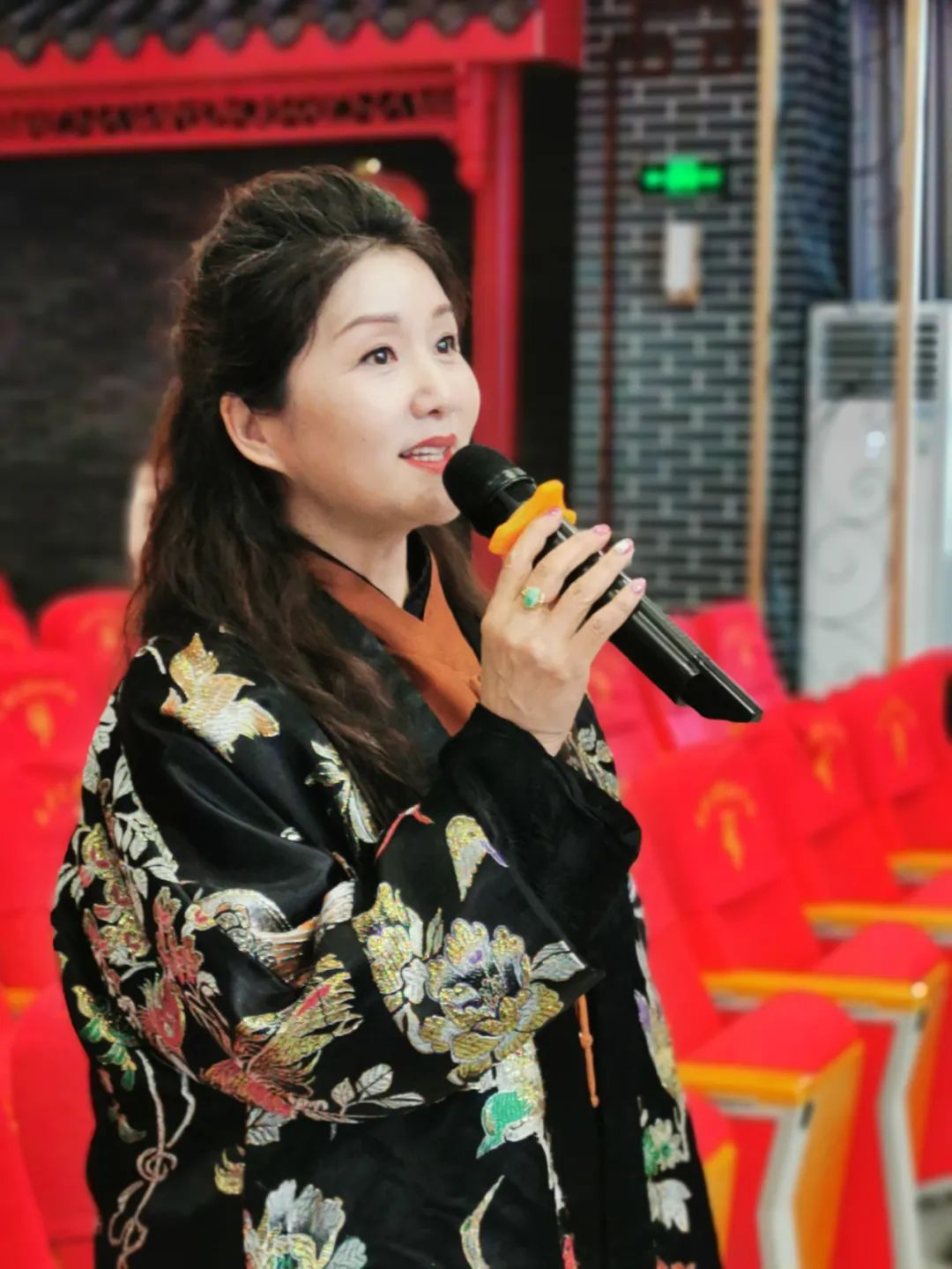 葛瑞莲上台表演了《茉莉花》扬剧唱法。葛瑞莲以其独特的唱腔、传神的形体身段表演和富有感染力的艺术表现,征服了现场的孩子们,赢得了台下师生的阵阵掌声。