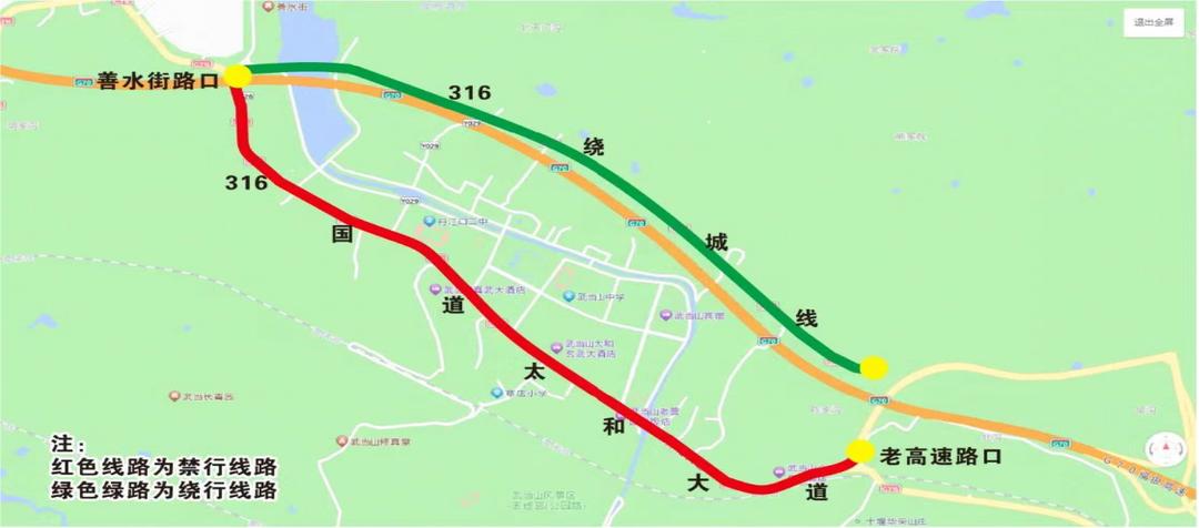 过境武当山的(车辆载重在5吨以上)货车禁止通行武当山城区,请绕行武当山特区太和大道算水街路口—316国道武当山绕城线--武当山太和大道原高速路口,其他过境的小型车辆尽量避开武当山城区通行。