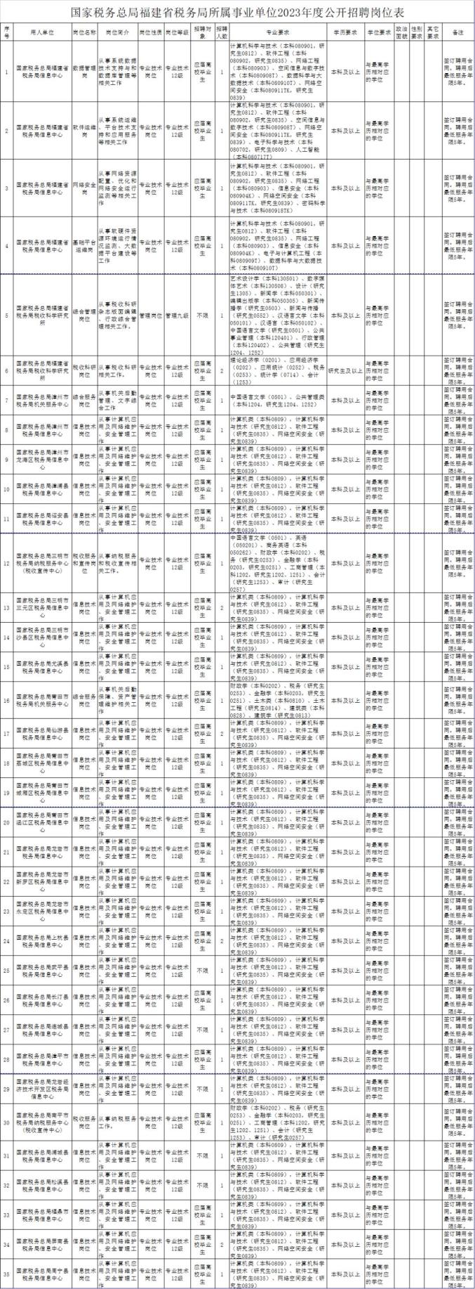 国家税务总局福建省税务局所属事业单位公开招聘工作人员40名