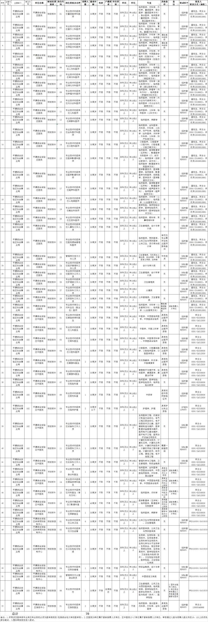 http平潭综合实验区公开招聘医疗卫生单位编制内工作人员70名