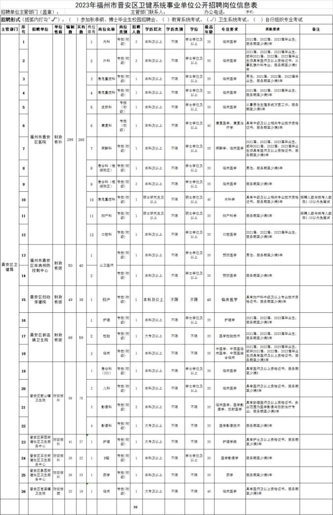 http福州市晋安区公开招聘卫生专业技术人员30名
