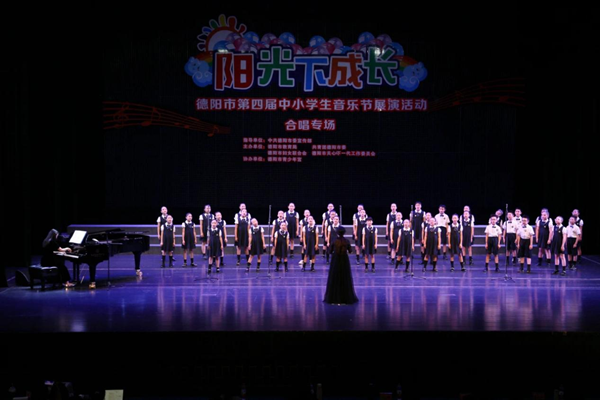 本次活动分为高校学生组(专业)、高校学生组(非专业)、教师组、中小学生组四个组别,德阳市华山路学校华韵合唱团带来了《下白雨》、《Samba lele》两首合唱,参加了中小学生组的评选,最终在136个参选单位中脱颖而出获得一等奖。