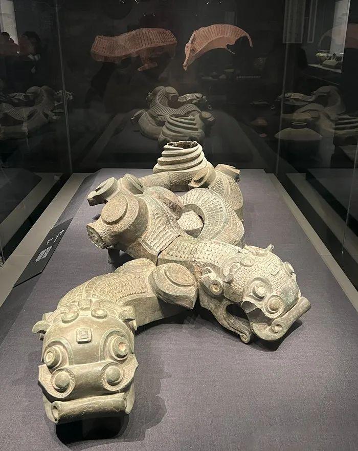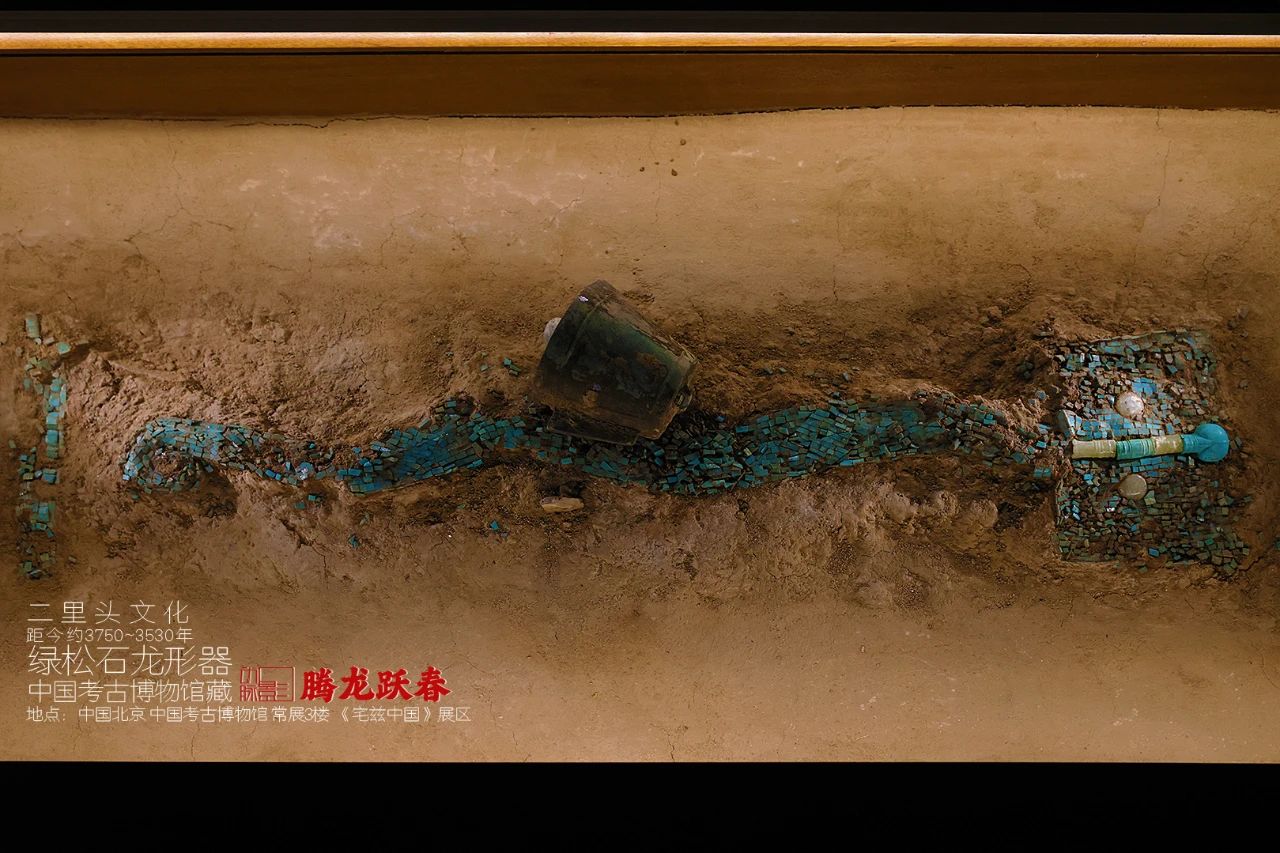 这件龙形“超级国宝”,由2300多片绿松石拼接而成,尽管2002年才出土于河南偃师二里头遗址,不过已被学术界普遍认定,是华夏龙图腾最直接、最正统的根源。