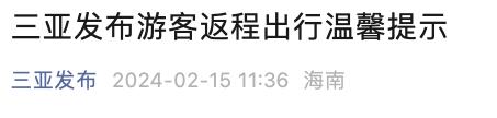 早些时候,三亚发布游客返程出行温馨提示,内容如下: