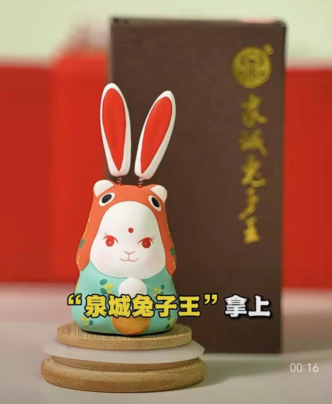 泉城兔子王是泉城济南一张传统而鲜活的非遗IP名片,以黄河细胶泥为原料,有十几个品种,分为不同系列,有浓墨重彩的武将兔,有精致可爱的兔宝宝,还有节庆系列的鼓乐兔宝等。