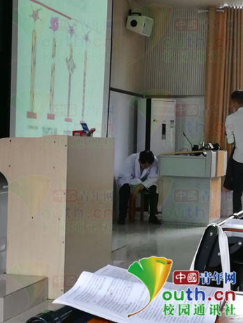 图为丁运良教授上课腹痛难忍,短暂休息。中国青年网通讯员 荣文博 提供