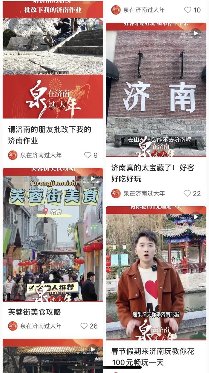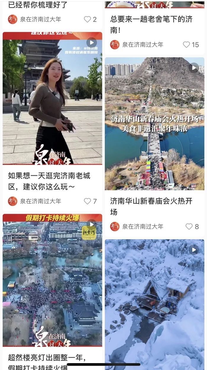 随着征集攻略像雪花一样飞来,抖音、今日头条、微博、小红书、Bilibili及新黄河客户端等平台都溢满了“济南年味儿”,引得不少网友种草泉城、种草济南。大家纷纷表示,“一定要去济南看一看。”