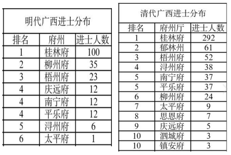 桂林能一直延续省会地位还体现在文化的发达程度上。明清时期,广西的进士有一半来自桂林,稳居进士榜第一,南宁只能排到第五,因此广西的官员也大多是桂林籍。