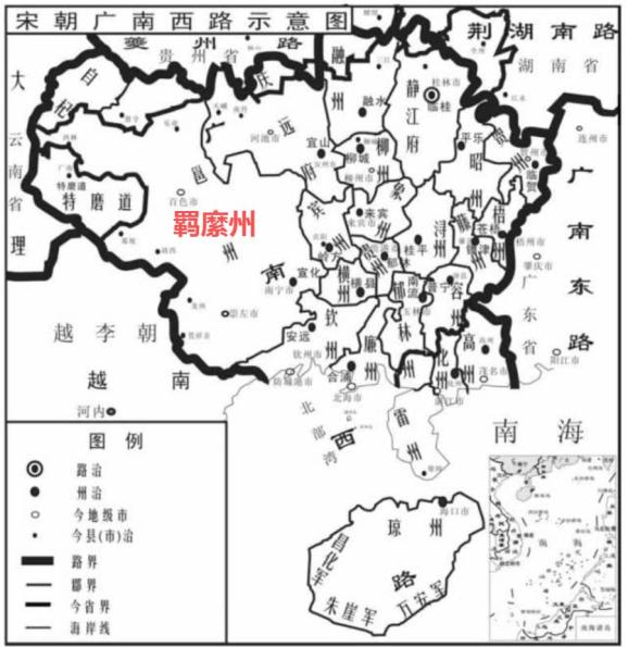 ▲宋朝广南西路示意图,西南部分布着诸多羁縻州