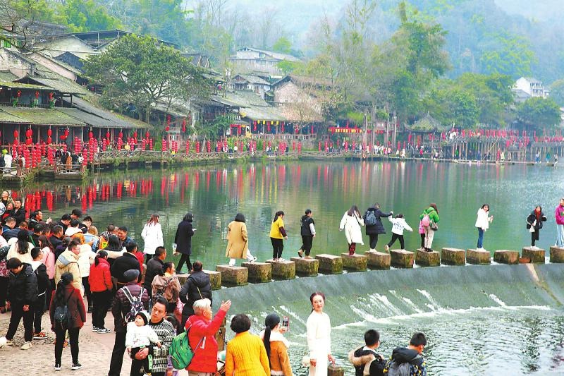 2月14日,游客在眉山市洪雅县柳江古镇景区游玩。姚永亮 摄(C视觉)