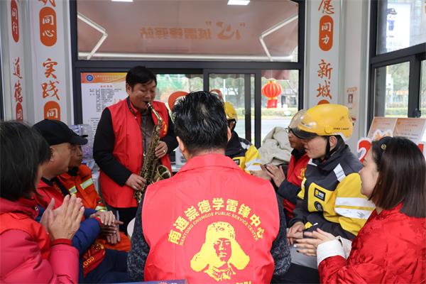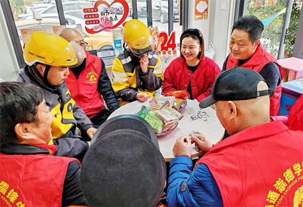 中国江苏网2月19日南通讯 为切实关心关爱新业态新就业群体,增强新业态新就业群体归属感、幸福感,2月18日,崇川区文峰街道新城社区新时代文明实践站组织开展暖“新”茶话会,邀请辖区外卖小哥、出租车司机、社会组织雷锋车队志愿者们共同来到雷锋驿站,为春节期间仍然坚守工作岗位的户外工作者们送去关怀与温暖。
