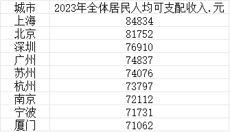来自华南的一线城市深圳2023年居民人均可支配收入76910元,比2022年增加4192元,同比增长5.8%。同省兄弟城市广州位居第四。
