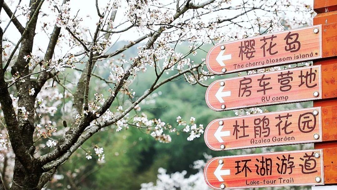 万物复苏的春天,先去万和湖畔的樱花谷逛逛,再沿着山脊漫游,一路欣赏十万亩野生杜鹃。