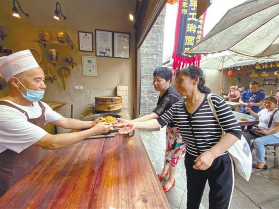 到西府老街品尝购买“尚家沟手工擀面皮”的顾客络绎不绝。