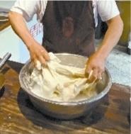 “尚家沟手工擀面皮”店主尚红发的手艺就来自岐山。“我父亲今年55岁,做了快30年了,他这手艺是跟我舅爷学的。我舅爷年轻时,曾跟着一位岐山的师傅学做擀面皮。”尚红发的儿子尚宾说。