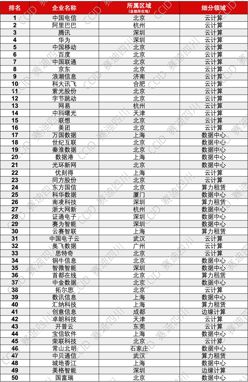 赛迪工业和信息化研究院(集团)四川有限公司(简称“赛迪四川”)近日正式发布《2023-2024中国算力服务企业综合竞争力50强研究报告》。中国电信、阿里巴巴、腾讯、华为、中国移动等入选。