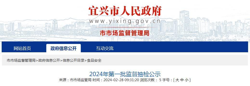 江苏省宜兴市市场监督管理局2024年第一批食品监督抽检公示