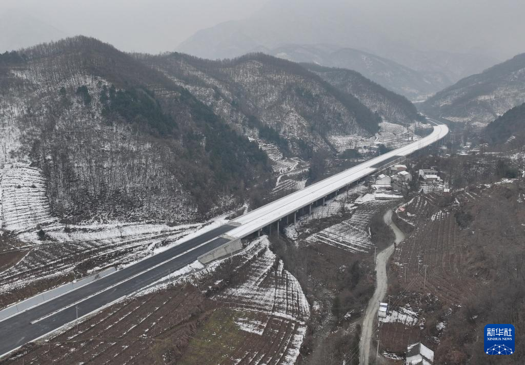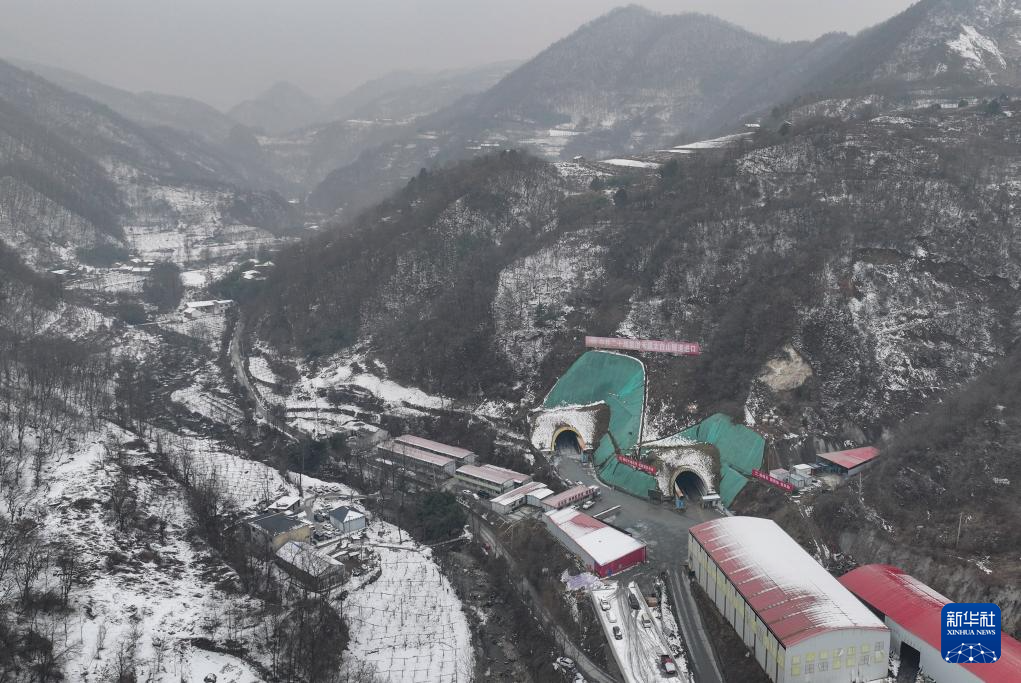 这是2月28日拍摄的位于陕西省宝鸡市眉县的眉太高速太白山隧道进口(无人机照片)。新华社记者 张博文 摄