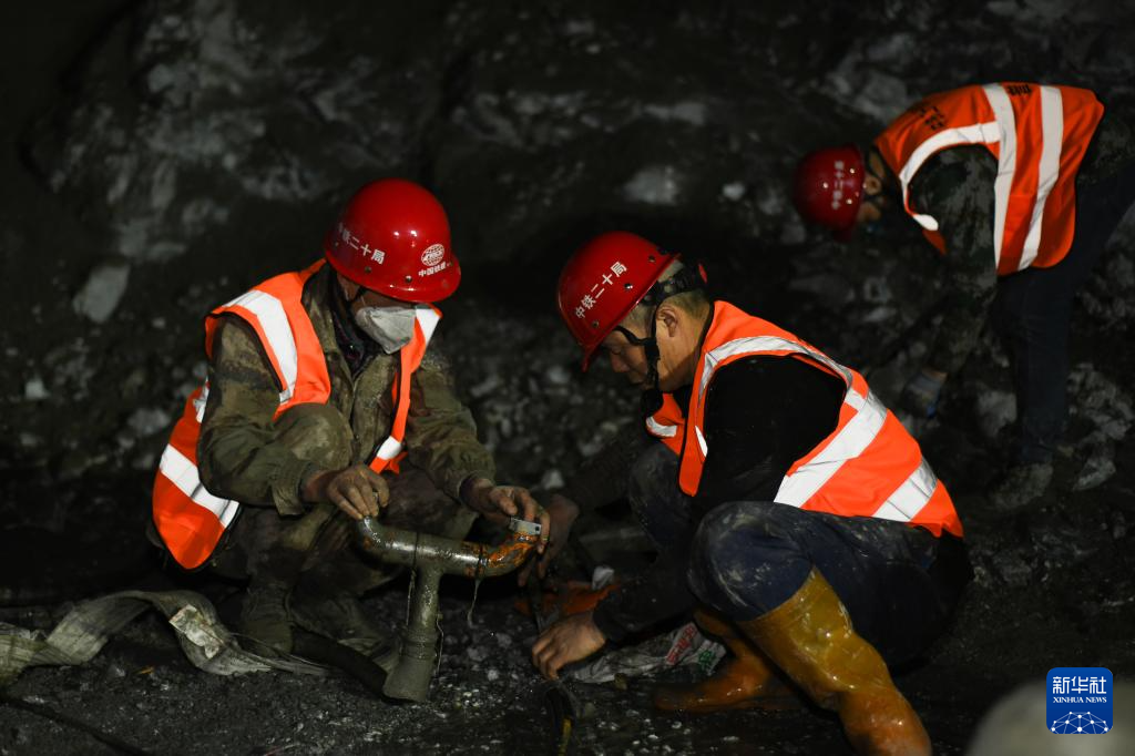 2月28日,中铁二十局工人在位于陕西省宝鸡市眉县的眉太高速太白山隧道施工。新华社记者 张博文 摄