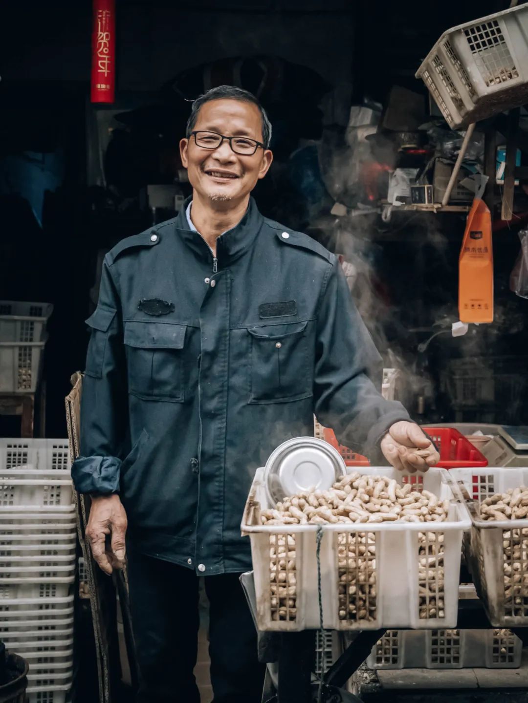 早些年在这里摆花生摊生意真的很好,现在疫情之后,利润就比较低了。以前临近过年每家人来这里买花生都要排着队等候。