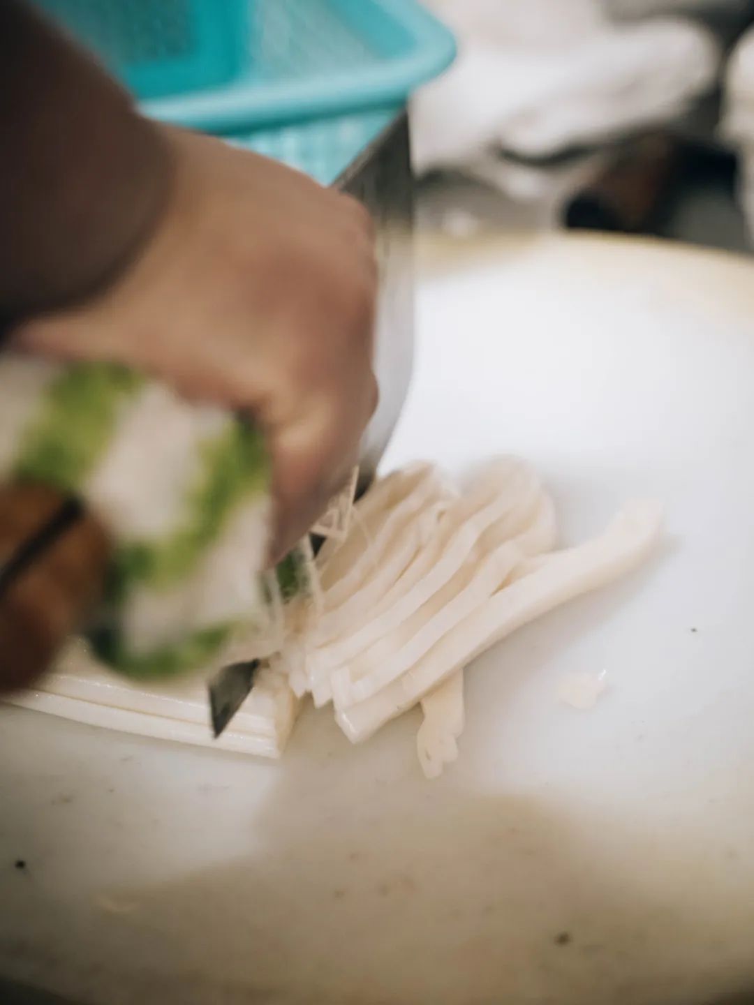 我小的时候就在这边长大,原来这个位置是爷爷奶奶住的,后来奶奶想着让我继续做下去,正好我之前在酒店后厨有改刀的经验,做这件事正好。
