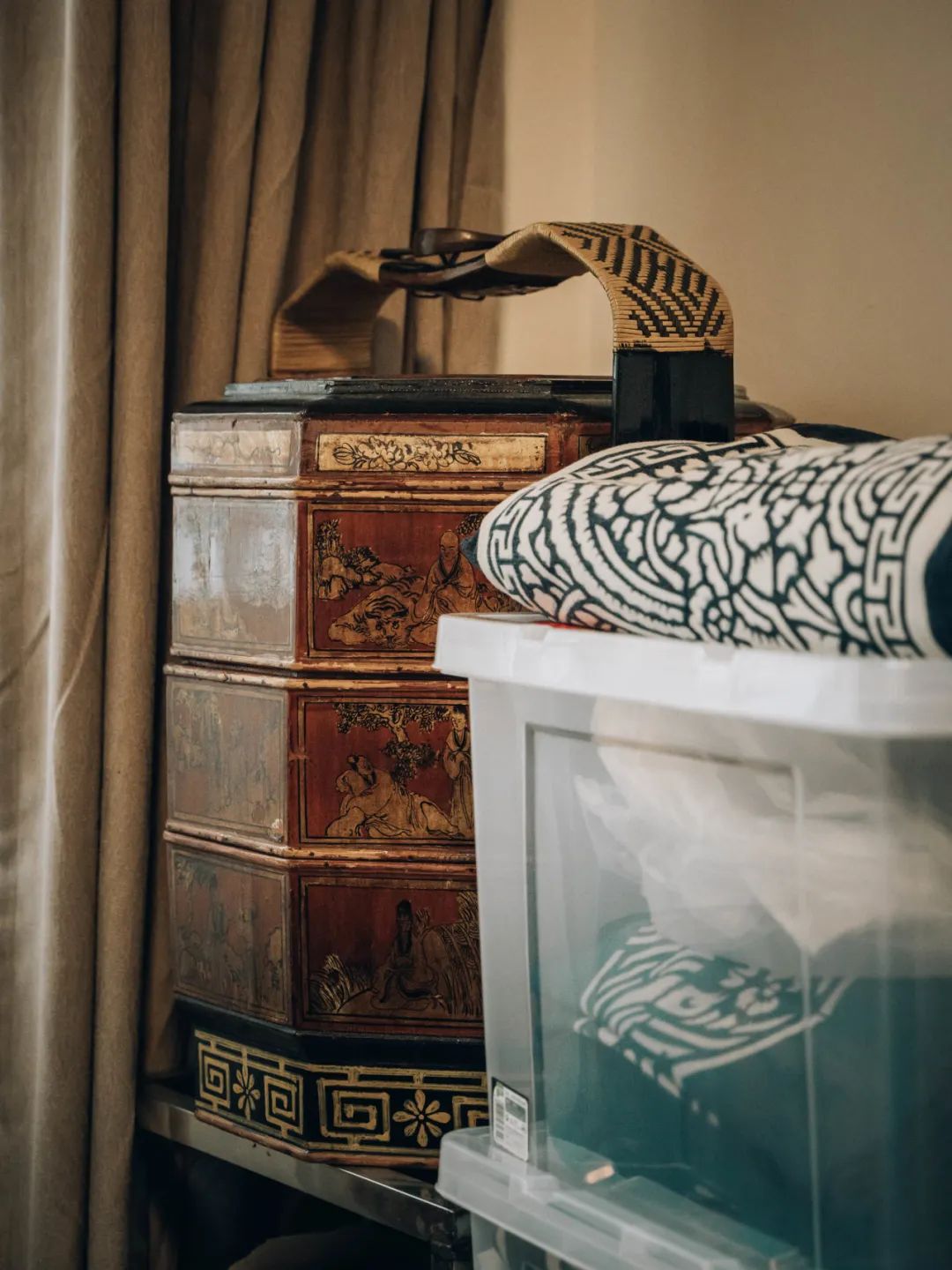 室内还有一些我从老家搬来的老家具,比如花鼓桶,这是过去女孩子出嫁结婚用的。老的物件都有自身的故事,我们需要重新拿起来,重新唤醒我们对温州记忆的认知。
