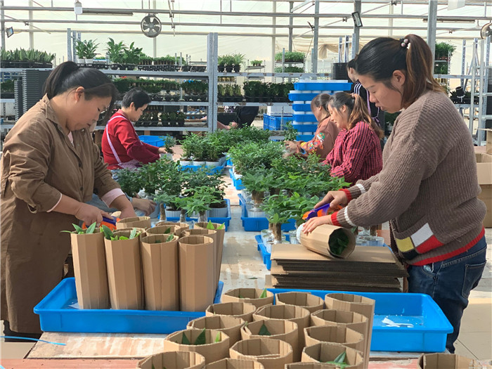 “依托跃进村新时代文明实践站,我们在去年建成了电商创客大楼。为吸引绿植电商企业加盟入驻,提出了‘减免租金3年’的口号。从当初的1家企业入驻到现在入驻电商达20余家,年销售额达到了1.2亿元。”跃进村党总支副书记毛建玉说。