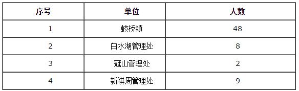 计划招聘67名社区工作者,其中蛟桥镇48名,白水湖管理处8名,冠山管理处2名,新祺周管理处9名。