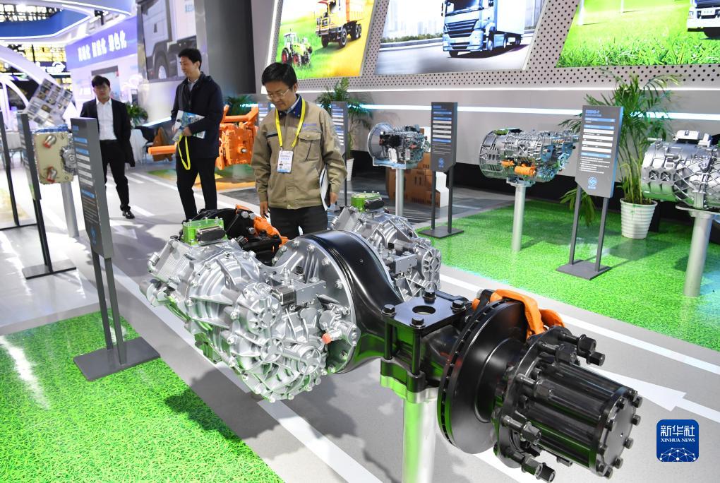 11月16日,观众在第七届丝博会上参观一款电驱桥总成。