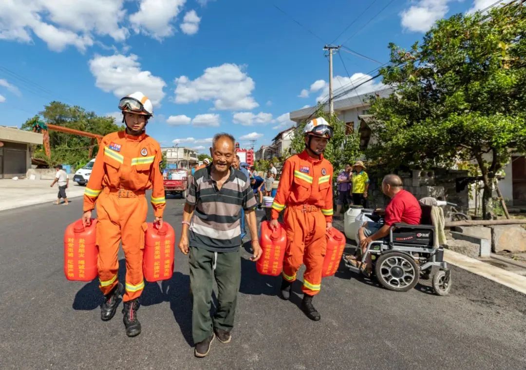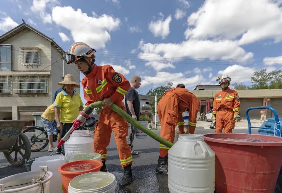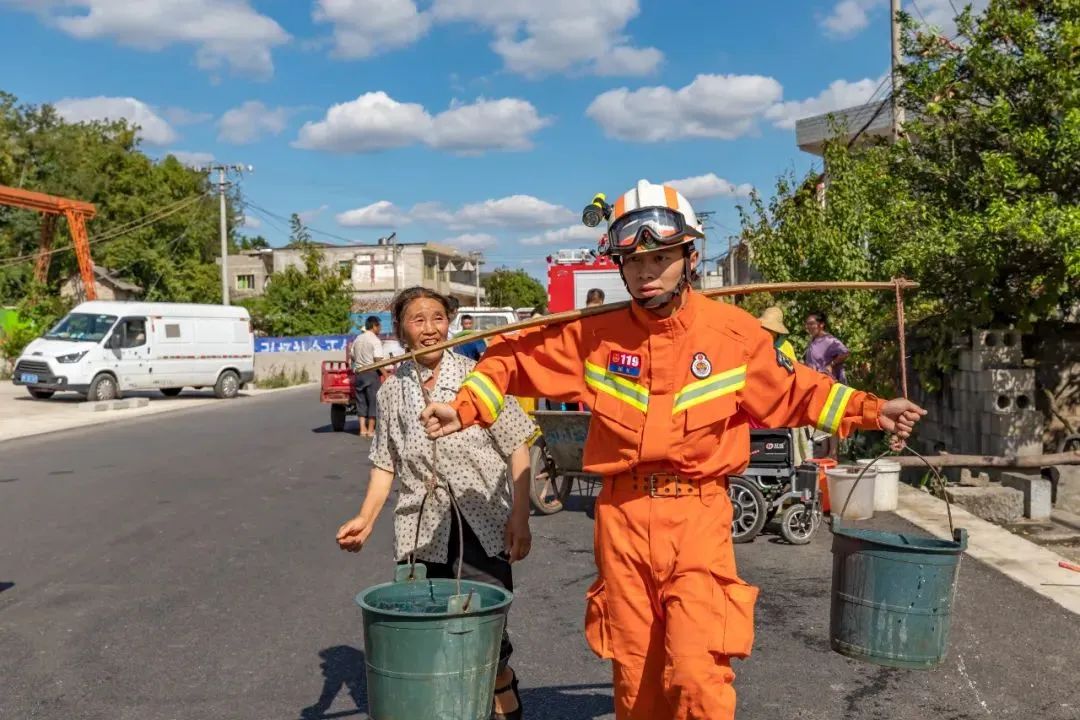 2022年8月22日,黔西市消防救援大队为辖区堰山坡村民送去生活用水(范晖 摄)