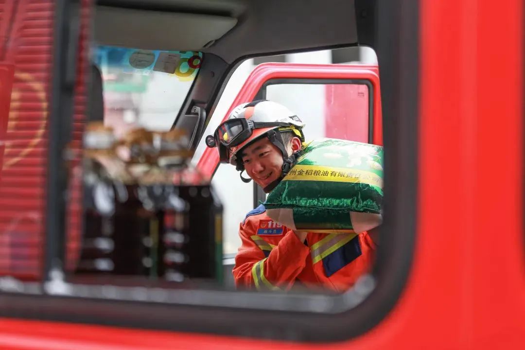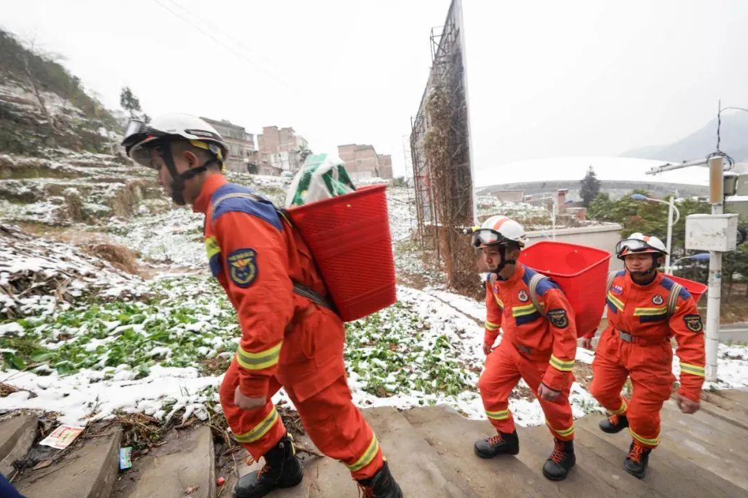 2024年1月23日,七星关区环城北路消防救援站“两红服务队”在搬运物资(高琦 摄)