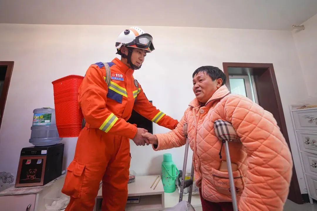2024年1月23日,七星关区环城北路消防救援站“两红服务队”到辖区探望居民(高琦 摄)