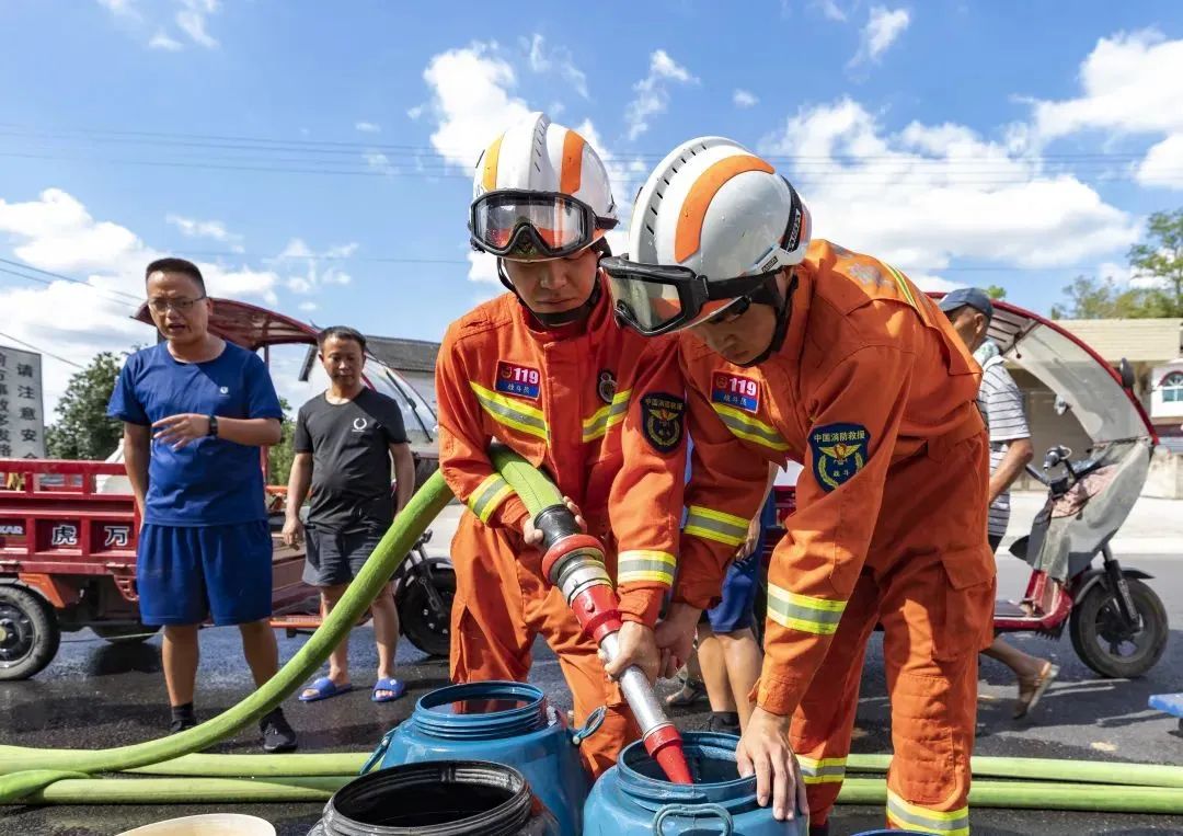 2022年8月24日,七星关区消防救援大队给林口镇种植基地送灌溉用水(李兴文 摄)