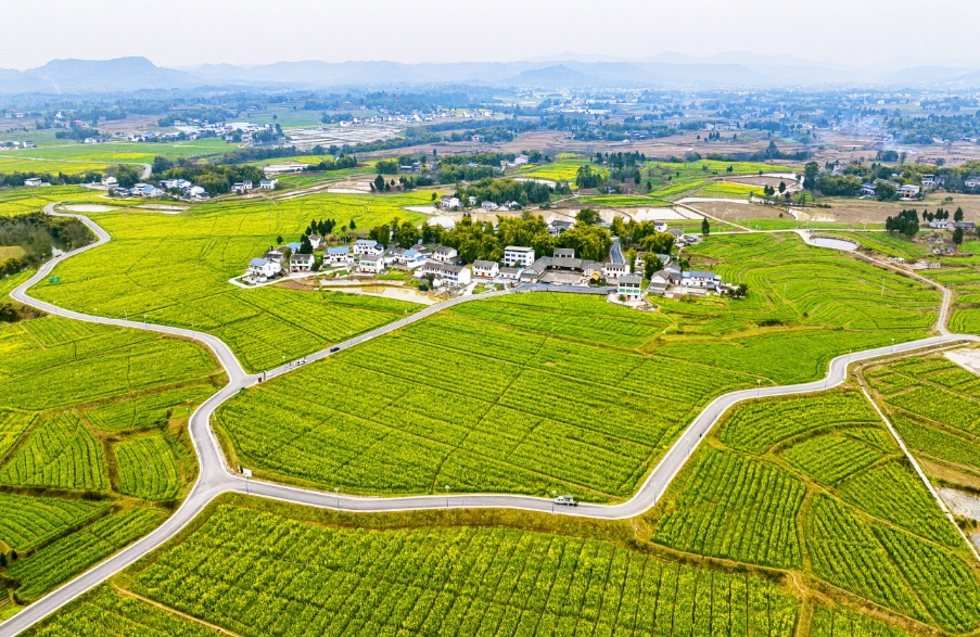 3月3日,广安区花桥镇光荣村粮油产业园,遍地油菜花竞相绽放,将乡村田园装扮成一幅金灿灿的图画。张国盛 摄