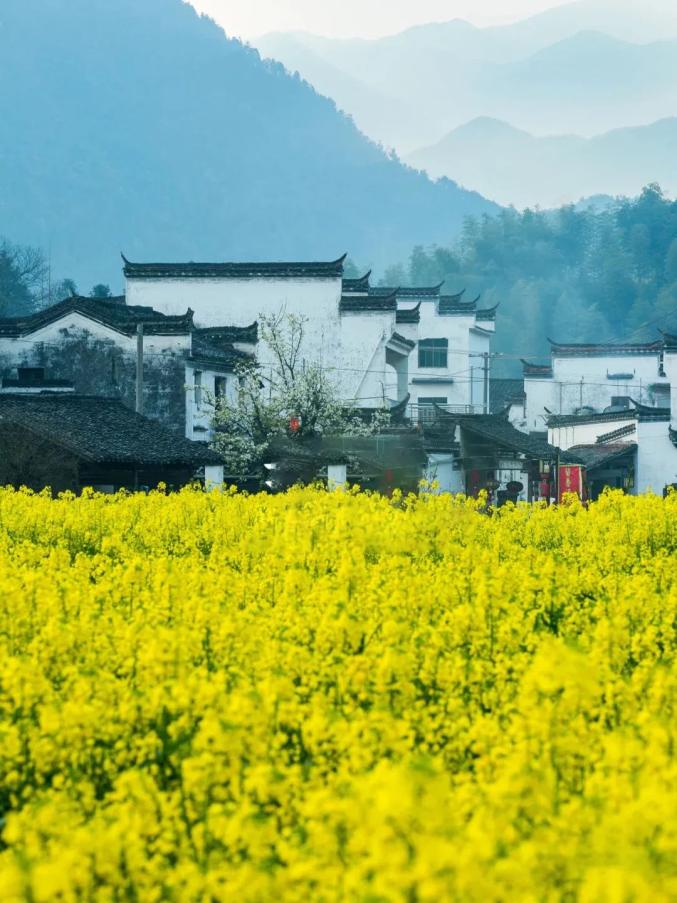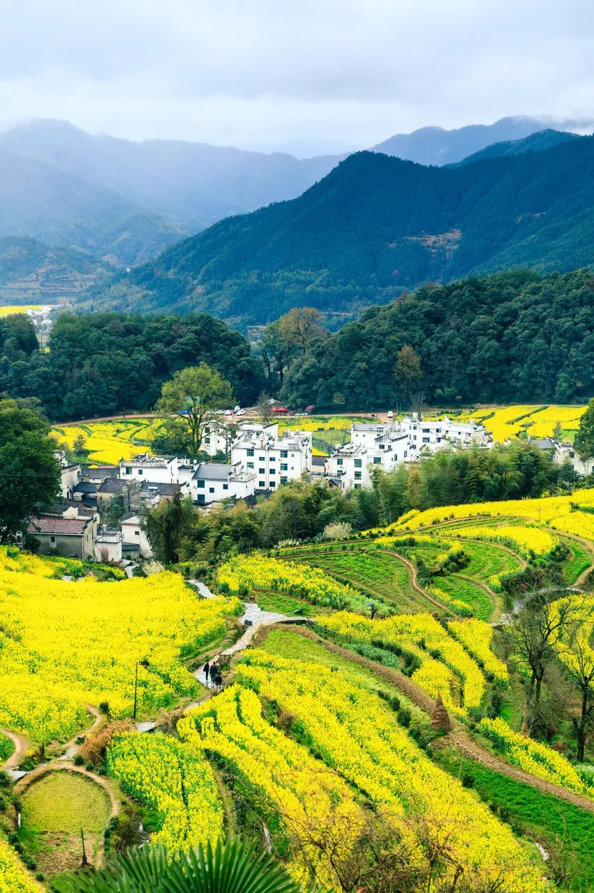 婺源的油菜花会从三月一直开到清明,婺源的油菜花太美了,一到春天,层层叠叠的梯田开满油菜花,明黄的油菜花映衬着白墙黛瓦。