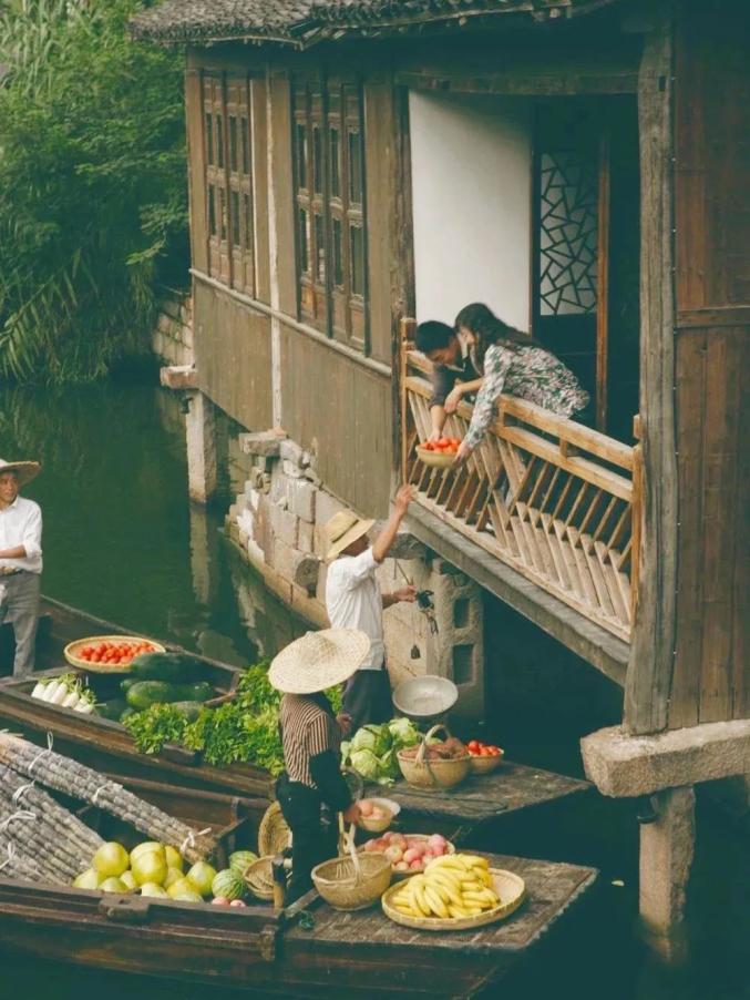 春日古镇上的生活,也仿佛一扫冬日的颓唐。叫卖声,桨声,让古镇处处充斥着生活气息。