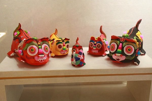透过刺绣展品,不仅能窥探到传承千年的悠久民间艺术,还能从中体会到中国人对于孩子和未来的美好祝愿,威猛的老虎形象护佑着孩子健康成长,艳丽的颜色搭配则是内心关于生活的不灭热忱与期待。