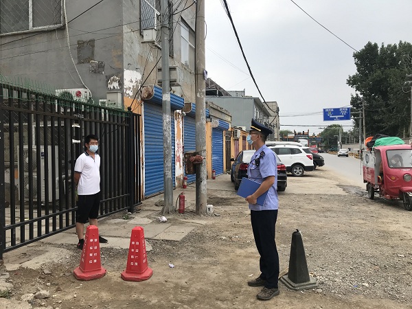 郑旭的工作本是负责西红门镇新建地区和团河地区的市场监管和行政执法,但因工作地点正处在北京疫情高风险地区,所以严格落实对商户的防疫监管重任,落在了他与同事的肩上。
