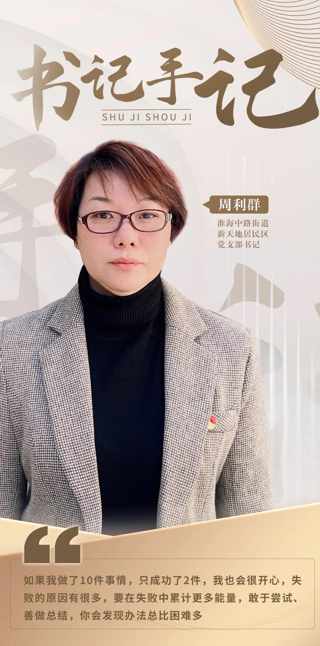 今天的【书记手记】,我们请到的是黄浦区淮海中路街道新天地居民区党支部书记周利群。