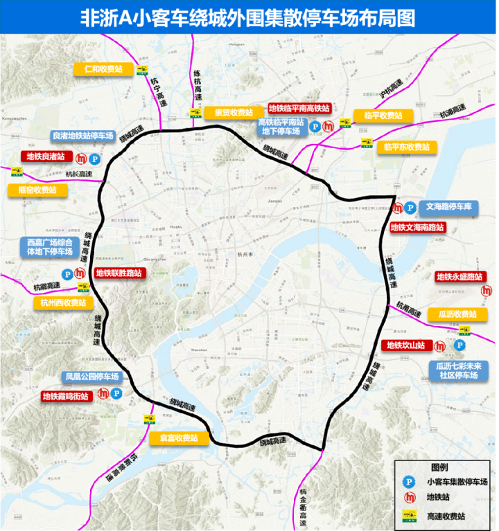 假日期间,建议自驾前往西湖景区的外地游客将车辆停放在绕城周边或“亚运核心圈”外围的停车场,通过换乘公共交通的方式进入景区。绕城外围可利用西嘉广场综合体地下停车场、良渚地铁站停车场、高铁临平南站停车场、瓜沥七彩未来社区停车场、文海路停车库、凤凰公园停车场等绕城外围6处非浙A小客车临时停车场,换乘地铁进入景区。通过申领“急事通”进入杭州绕城内部的小客车,可在“亚运核心圈”(钱塘快速路、空港高架、通城高架、彩虹快速路、紫之隧道围合区域)以外的区域自行选择停车换乘公共交通或其他方式进入西湖景区。