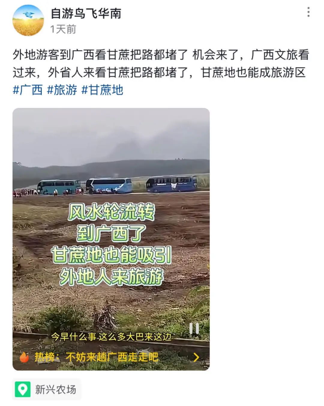 其实看到了广西遍地都是甘蔗,也有很多网友好奇能不能直接摘来吃。对此营销号的“建议”是“只要跑得快,那就随便吃”。