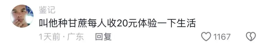 看到视频的广东老表隔着屏幕都被唤醒搞钱DNA,他直接建议广西老表们搞个甘蔗种植的农家乐,票价只要20元。当然这样的项目要真能落地,广西老表们不仅收获了免费劳动力,甚至还能拉动消费。