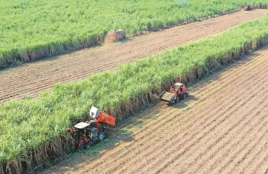 今年1月,广西扶绥县蔗农利用农机加紧收获糖料蔗,确保新榨季原料用蔗需求。(图:广西日报 卢文斐)