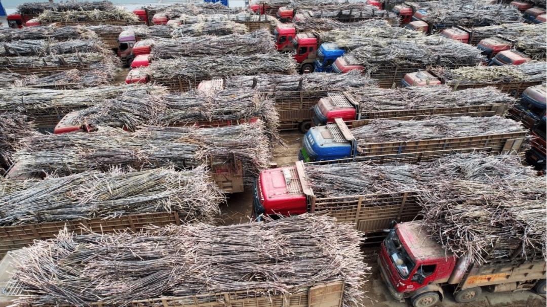 2022年7月,广西崇左,大货车将甘蔗送往糖厂榨糖(图:央广网 黄献生)
