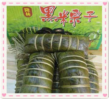 隆林有句顺口溜:“拜年拜年,粑粑上前”,这里说的粑粑,就是指的粽子。据说在牂牁江(今南盘江)流域的古夜郎国境内,至今仍保留着一种古色古香的药用黑粽——隆林黑粽。千百年来,隆林黑粽子一直以味香、细嫩可口、具有丰富的营养价值和药用价值而驰名中外。经糯米与长寿草灰相互泡染成的黑糯米、猪肉拌上各种原料为馅做的粽子就叫黑粽子。