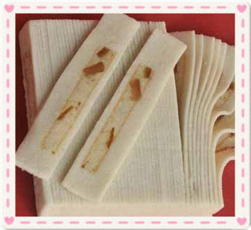 柳城云片糕产于柳州柳城县城关镇,早在清乾隆年间(1736~1795年)就已开始生产。柳城云片糕历史悠久,制作工艺细腻,用上等大糯米、纯猪油、精白糖为主要原料,辅以天然香料和陈皮末精制而成,具有营养丰富、余香悠久的特点。